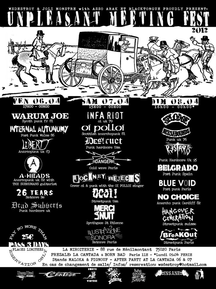 Dal 6 all' 8 aprile 2012 si terrà presso lo squat parigino La Miroterie il primo "Unpleasant Meeting Festival", un'interessante rassegna sospesa tra i "mondi" del punk e del post-punk, all'insegna del D.I.Y.